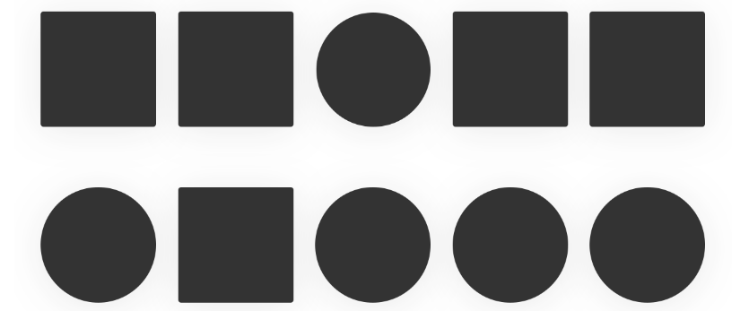 明顯的,第一排中獨立的圓形因為形態發生了變化而變得個性,與眾不同。